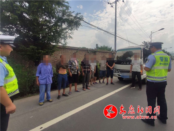 7月31日15時許,大隊執(zhí)勤民警在316國道沿線開展路面巡邏,行至恒口東大門時,發(fā)現(xiàn)一輛號牌為皖A(yù)C***C號輕型欄板貨車后車廂有違規(guī)載人嫌疑,巡邏民警立即上前攔停,示意駕駛?cè)死钅衬惩\嚱邮軝z查。經(jīng)查,該貨車核定載人數(shù)為5人,實際載9人,貨車車廂違法載客4人,屬于貨車違法載客的嚴重交通違法行為。