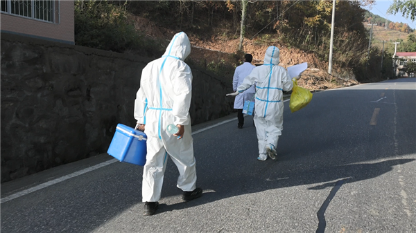 每天,穿著厚厚的防護服,背著重重的防疫箱,幾十里路走下來,常常都是汗流浹背、氣喘吁吁,那種累真的是想努力也使不上勁,入戶檢測完一戶,稍緩上幾十秒,便繼續(xù)前行至下一戶?!案杏X經(jīng)常都是累的忙得吃不上一口飯、喝不到一口水。上山采核酸時常錯過飯點,一直要撐到下午4、5點鐘。有時候一身防護服一穿就是一整天,就是怕吃飯耽擱時間,因為我們必須迅速準確有序采集完當天的任務,其實,就是在和時間賽跑。但很多時候一聲‘謝謝、辛苦了’都頓時讓我們感覺所有付出都是值得的。”