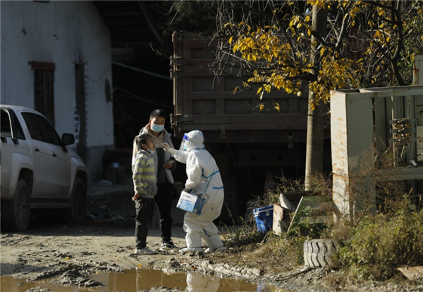 11月25日中午,忙完第一輪核酸采集,再接到流調(diào)通知單后,王康又立馬帶著他的“小伙伴”前往三里社區(qū)為居家隔離人員做核酸檢測,溝深路滑,因前幾日陰雨天氣路面濕滑,在上一處陡坡時,車輪瞬間開始側(cè)滑,但是時間緊迫只能一試再試,大概試了20余次,在村上壓路車的幫助下,又試了兩次車子終于緩緩啟動。喜悅之余他們就即刻趕往隔離群眾家中,“我們快一點,再快一點,就能讓等待的人少受一點冷”,這是“大白”們共同的心愿。