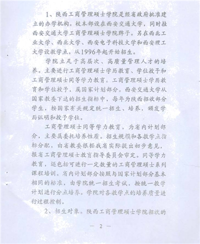 按照省政府有關(guān)文件規(guī)定,學(xué)員修滿規(guī)定的課程學(xué)分,完成畢業(yè)論文,通過(guò)論文答辯及評(píng)審后,由陜西工商管理碩士學(xué)院頒發(fā)畢業(yè)證書和學(xué)力證明。學(xué)員在省內(nèi)單位晉級(jí)和使用時(shí),視同工商管理碩士。