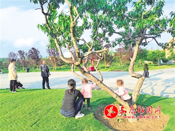 “五一”期間,在高新區(qū)桃花源景區(qū),個(gè)別游客帶領(lǐng)小孩未按照相關(guān)規(guī)定文明規(guī)范游玩,小孩攀爬樹木,很是危險(xiǎn)。(陳榮斌 攝)
