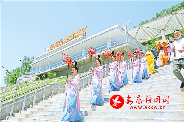 4月29日上午,來自西安的3歲小朋友汐汐在父母的陪同下為舞獅點睛,拉開了瀛湖舞獅迎客的精彩序幕。于是,在景區(qū)全域,游客都能與舞獅偶遇并親密接觸。漢服小姐姐帶來的優(yōu)美舞蹈也引得游客駐足觀看,魚燈巡游帶領(lǐng)游客與魚同游,彰顯了瀛湖親水的魅力。