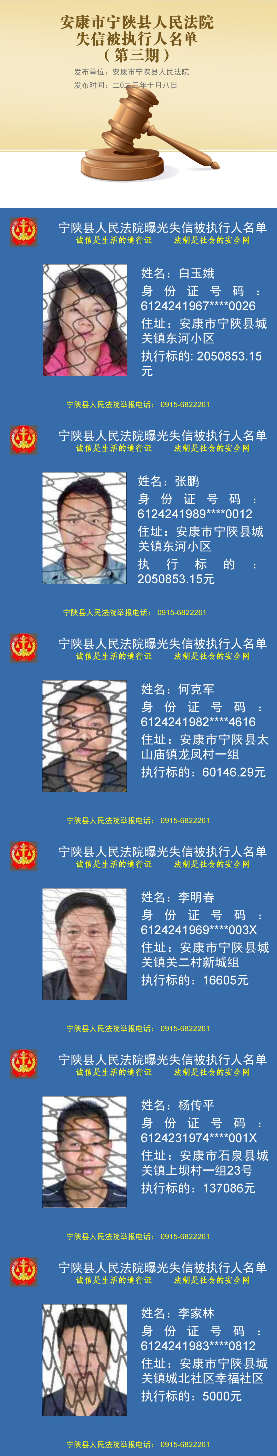 曝光失信 | 寧陜法院2023年第三期失信被執(zhí)行人名單公布