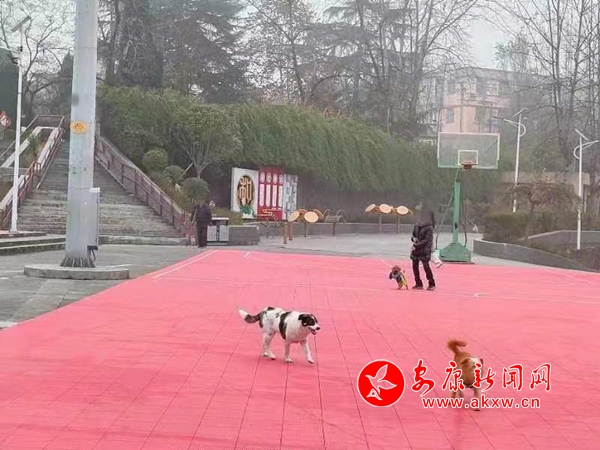 12月5日,中張嶺社區(qū)廣場(chǎng)市民遛狗不牽繩。