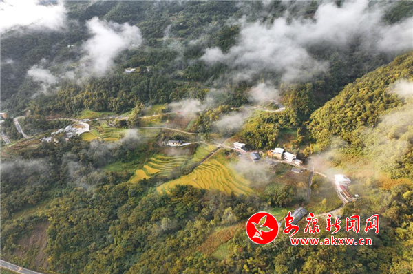 大湖溪位于鎮(zhèn)坪縣城關(guān)鎮(zhèn)友誼村,距離縣城大約半小時(shí)車程。沿207省道順南江河而下,穿過南江湖大壩就到了谷口。一條嶄新的柏油馬路沿溪流伸向大山深處,茂密的森林覆蓋著山巒,星星點(diǎn)點(diǎn)的農(nóng)舍、民宿集群和土地,若隱若現(xiàn)地掩映在云霧繚繞的群山之間,許多保存完整的巴山古老傳統(tǒng)民居石板屋,炊煙裊裊,與淡淡的晨霧相互交織,構(gòu)成了一幅渾然天成的水墨畫卷。放飛手中的無(wú)人機(jī),我貪婪地捕捉這一幅幅夢(mèng)幻般的景致。