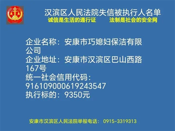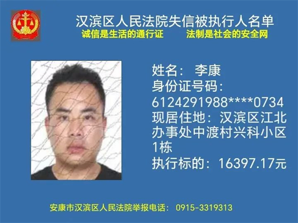 2月1日安康市漢濱區(qū)人民法院曝光新一批失信被執(zhí)行人名單快看都有誰轉發(fā)提醒更多人↓↓↓?