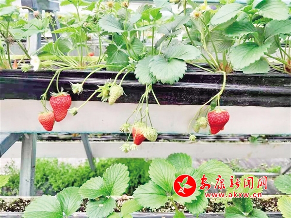 “‘高架草莓’不僅節(jié)約人力,能讓大家冬天也能吃到鮮甜可口的草莓,也不用擔心降溫、大雪等天氣影響。懸空種植還方便工人以及游客進行采摘,許多周邊群眾慕名而來,體驗‘開心農(nóng)場’?!眻@區(qū)技術(shù)員曹峰說。