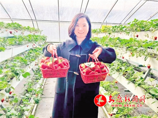 走進大棚,草莓特有的清香味撲鼻而來,新型的鋼架種植平臺一線排開、高低錯落,一壟壟長勢茂盛的草莓秧苗嫩綠清新,一顆顆飽滿透紅的草莓點綴于綠葉之間,幾名游客正在仔細地采摘著成熟的果實?!斑@草莓聞起香,吃起來甜!在這采摘草莓還不用彎腰,不費勁。”游客高女士說。