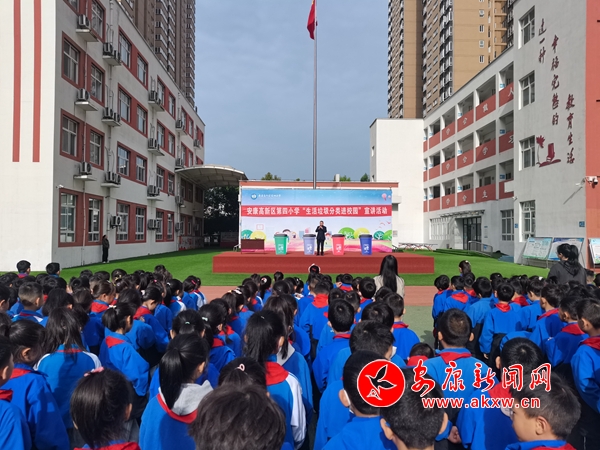 本網(wǎng)訊(通訊員 王宗濤)“同學(xué)們,我們是環(huán)境保護(hù)小天使,我們要讓山更青,水更綠,天更藍(lán),我們生活的家園更美麗!我們應(yīng)該養(yǎng)成垃圾分類(lèi)的好習(xí)慣。”4月9日上午,春陽(yáng)燦爛的安康高新區(qū)第四小學(xué)的操場(chǎng)上,生活垃圾分類(lèi)“進(jìn)校園”宣講活動(dòng)火熱進(jìn)行中。
