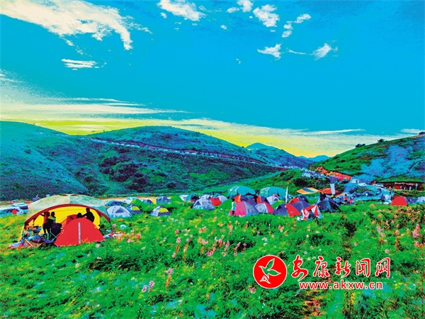化龍山草甸如今是露營(yíng)網(wǎng)紅打卡地。王韜 攝
