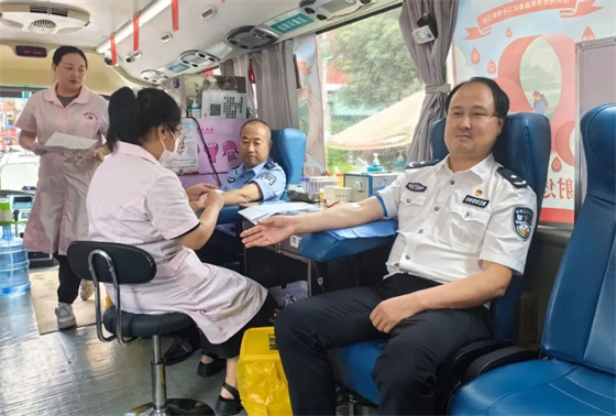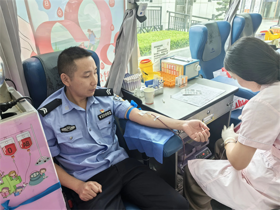 驕陽似火,愛心傳遞。參加此次獻血活動的民輔警表示,無償獻血是一種愛心奉獻,也是一種社會責任。能盡自己的微薄之力,為生命接力,是一次非常有意義的活動,今后工作中,他們將繼續(xù)積極投身到無償獻血志愿活動中來,用熱血傳遞愛心,用熱血踐行誓言,用熱血擔當使命。?