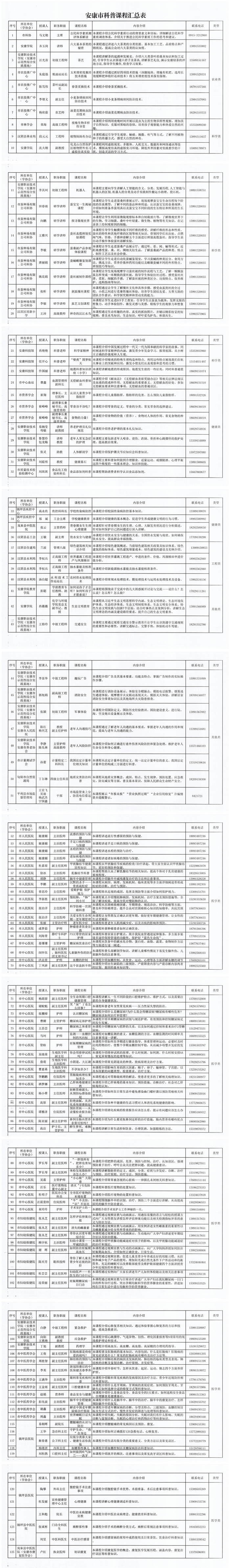 附件:安康市科普課程匯總表