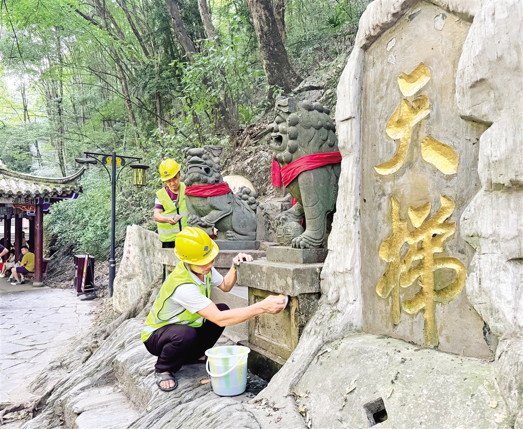 8月22日,工作人員正在香溪洞開展景區(qū)設(shè)施清理工作。據(jù)施工現(xiàn)場負(fù)責(zé)人介紹,香溪洞風(fēng)景名勝區(qū)管理局將會對供水、供電、照明等設(shè)施進(jìn)行升級改造。(鄒一銘 攝)