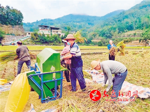 這邊,村民們忙著收割、搬運(yùn)、脫粒,田壟里機(jī)械轟鳴,一派忙碌。旁邊堰渠里,一群群稻花魚(yú)在水下游弋嬉戲,往來(lái)追逐,不時(shí)有魚(yú)兒躍出水面,閃著銀波,攪起一圈圈漣漪,吸引了三三兩兩的游人來(lái)打卡拍照,暢享這充滿自然之美的田園景色。