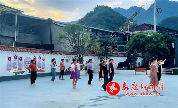 “123、223、323,把手伸直……”,在文化活動廣場的大舞臺上,中壩村舞蹈協(xié)會會長徐開珍正在耐心指導村民們晨練。