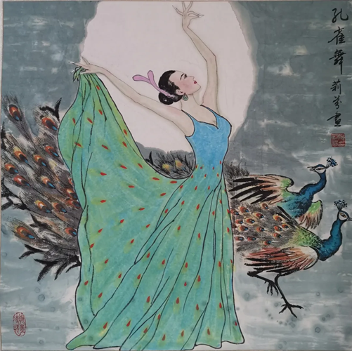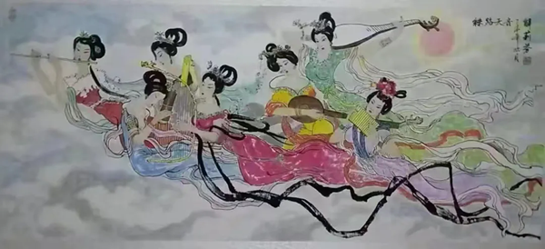 解大姐是陜北人,性格開朗、直率,說話中間或帶出一些濃重的陜北口音。雖說她主業(yè)從于政界,但她微笑的背后卻潛藏著不可掩飾的藝術(shù)天賦,揮發(fā)著令人奪目的藝術(shù)才情。繁雜的政務(wù)工作之余,她創(chuàng)作不輟,堅(jiān)持不懈,居然在多個藝術(shù)門類收獲頗豐,好評連連。寫小說,她寫出幾十萬字的長篇出版發(fā)行;寫劇本,竟拍成了電影予以公映;學(xué)國畫,亦讓藝術(shù)界的大咖贊口不絕。我雖不才,空有浮名,但深耕藝界多年,對于其中的好賴還能分出一二。我感到,一個人的人品和藝品基本一致,解大姐的藝術(shù),是扎根于她熟悉的陜北大地的藝術(shù),是生長在山峁峁上經(jīng)歷風(fēng)霜雨雪的藝術(shù),就像那陜北倔強(qiáng)的疙瘩柳,散發(fā)著對土地對生活的親近和熱情,對人生價值實(shí)現(xiàn)的不屈和追求??吹剿膰嬓伦?,有陜北剪紙等民間藝術(shù)的滋養(yǎng)和影響,真切而樸實(shí)。她的飛天人物系列,泥古而不落窠臼,使我想到疙瘩柳條隨風(fēng)擺動的婀娜風(fēng)姿,溫溫潤潤,令人遐思和向往;她的花鳥畫作,使我想到陜北山野一片蒼茫之間,一朵兩朵盛開的山丹丹花,嬌艷得令人不忍觸手;她的山水畫作,又猶如陜北山原上嫩黃的棗花,洋溢著撲面而來的質(zhì)樸、清新和率真之氣。