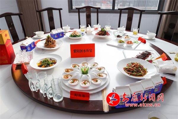 “紫陽(yáng)洄水魚(yú)宴”由8個(gè)涼菜,即:香酥小魚(yú)、干煸牛肉、茶香魚(yú)皮、鱘魚(yú)凍、撈汁七彩花生、酸辣四拼、雙色變蛋、涼拌折耳根;8個(gè)熱菜即:茶香鱘魚(yú)、紫蘇魚(yú)片、熗鍋鯉魚(yú)、釀羊肚菌、辣子雞、臘味三拼、魚(yú)頭燉黑豆腐、當(dāng)歸白蘿卜燉羊肉;一個(gè)湯菜:魚(yú)丸湯;3道小吃即:魚(yú)肉餃子、茶香餅、紫菜魚(yú)餅;主食:金銀米飯、酸菜面和飯后水果拼盤(pán)組成。據(jù)了解該宴席是繼漢濱區(qū)流水魚(yú)宴、石泉縣江魚(yú)魚(yú)宴之后,全市公開(kāi)推向市場(chǎng)的第三個(gè)以魚(yú)為主料的專(zhuān)業(yè)魚(yú)宴。?