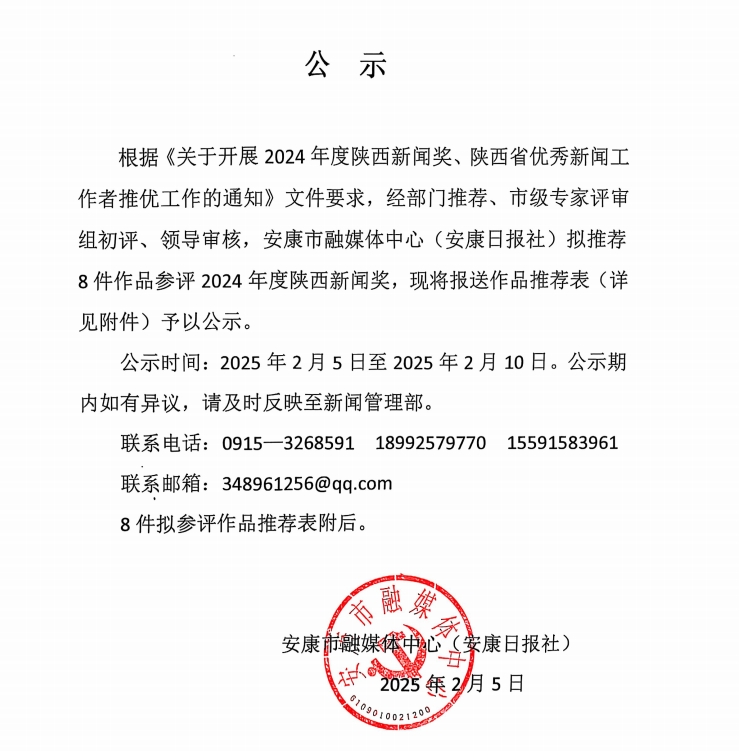 主管部門:中共安康市委宣傳部 主辦單位:安康市融媒體中心、安康市綜合新聞信息中心 互聯(lián)網(wǎng)新聞信息服務(wù)許可證:61120180006 |陜ICP備11013678號|陜公網(wǎng)安備 61090202000120號 本站支持IPV6 聯(lián)系電話:0915-3356512 投稿郵箱:news@akxw.cn 地址:安康市漢濱區(qū)江北傳媒大廈12層