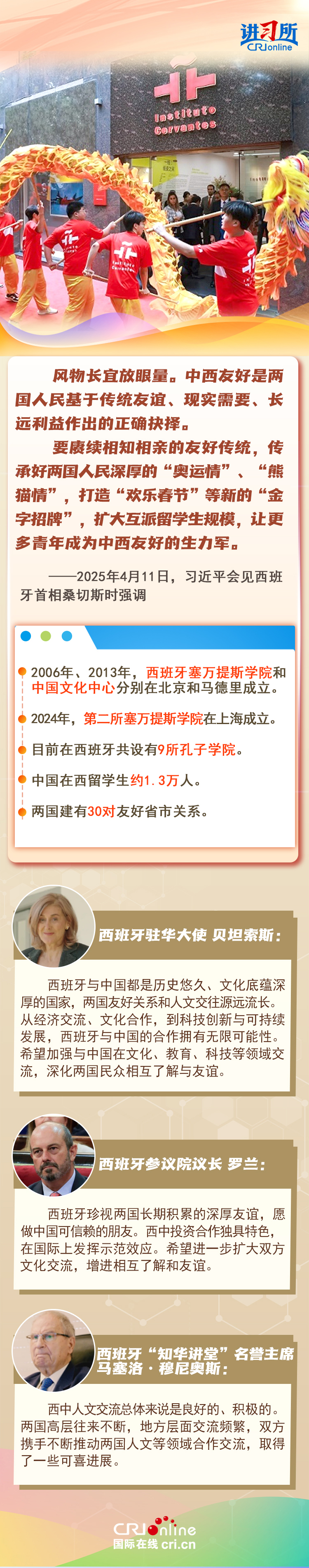 今年是中西全面戰(zhàn)略伙伴關(guān)系建立20周年,也是中歐建交50周年。多年來,中西兩國領(lǐng)導(dǎo)人保持密切互動,秉持互尊互信、互利共贏精神,兩國在深化貿(mào)易、投資、科技創(chuàng)新、綠色能源等領(lǐng)域取得豐富合作成果,雙邊關(guān)系走在中國同歐洲國家關(guān)系前列。在西班牙人士眼中,良好的對華關(guān)系對西班牙、歐洲和世界具有重要意義,將會為兩國人民帶來更多實(shí)實(shí)在在的福祉,也將共同創(chuàng)造更美好的未來。