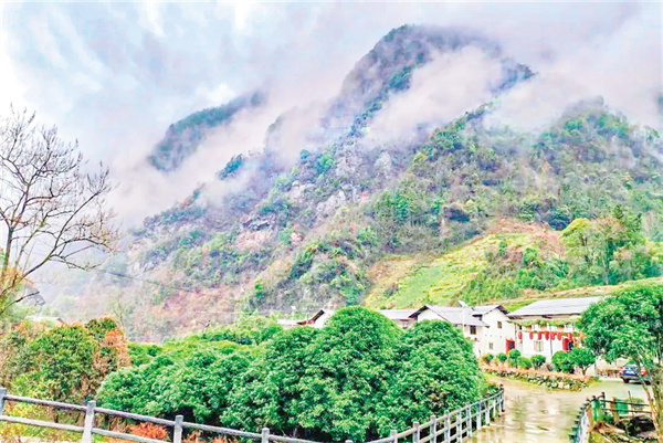 推開(kāi)房門(mén),晨霧尚未散盡,細(xì)雨斜斜地織著。老人們常說(shuō)“有雨山戴帽,無(wú)雨半山腰”,這話在此時(shí)格外應(yīng)景——裊裊云霧沉甸甸地壓住遠(yuǎn)處的峰頂,像給每座山頭都戴了一頂灰絨帽子,讓群山失去了往日的險(xiǎn)峻,只留下青灰色的輪廓,恍若一幅優(yōu)美的寫(xiě)意水墨畫(huà)。等到午后雨勢(shì)稍小,云霧退到半山腰,卻始終戀著大山不肯消散。隨著一陣陣微風(fēng)拂起,那些云霧像被吹落的玉帶,在墨綠的樹(shù)林間織出半透明的簾幕。