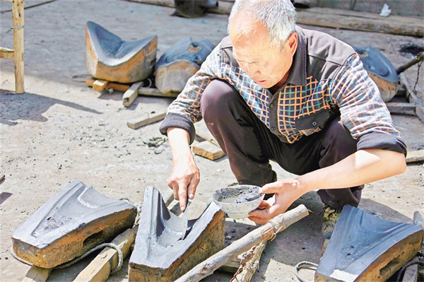 宋祖新的叔祖父是當(dāng)年鏵廠的“掌勺”師傅之一,在一次次觀看大人們操作中,他也學(xué)會了從制模到熔鐵澆鑄一整套鑄鏵技術(shù)。隨著農(nóng)業(yè)科技的發(fā)展,傳統(tǒng)的鐵鏵制作工藝逐漸被機(jī)械化生產(chǎn)所取代,但在陜南一些山區(qū)坡地仍延續(xù)著犁鏵耕作方式?!扒靶┠?,多數(shù)人都選擇外出務(wù)工,種地的少,好多年沒有開爐鑄鏵了,很多年輕人都沒有親自體驗過制作過程,聽說我們這兒又開始鑄鏵,連縣城的人都趕來看稀奇!”宋祖新說。