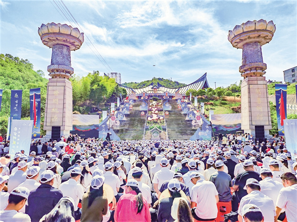暮春的南宮山,蒼翠浸染。在悠揚的《神奇美麗南宮山》旋律中,活動正式啟幕,《序章·天門啟道》《天玄·問道山河》《地杰·武韻巴人》《和鳴·萬象共生》四大篇章層層遞進。伴隨著激昂的音樂,國樂表演《刀劍如夢》、竹海劍影《笑傲江湖》、巴人武韻《虎鈕錞于》、武術(shù)《天地人和》、舞+武《舞武對弈》等節(jié)目依次出場,活動現(xiàn)場鼓點如雷,舞者們騰空而起,剛猛的武術(shù)招式與充滿力量感的戰(zhàn)舞動作交織,每一次騰躍,都將現(xiàn)場觀眾的熱血與激情點燃。