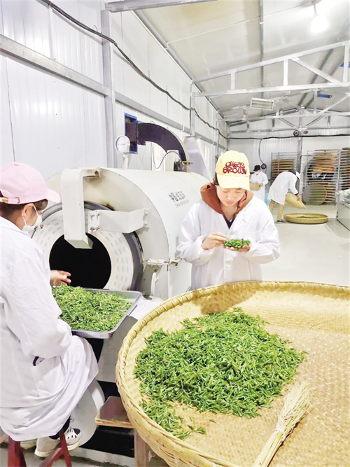 沿著九曲山路攀至絲鋪村五龍山,1200米的海拔高地,500畝生態(tài)茶園豁然舒展在眼前。茶農們星羅棋布地穿梭在茶園,夏茶葉紛紛從茶樹間跌落?!案呱讲杌馗首?,這片云海就是天然保鮮庫?!贝逯Р繒洸碳椅妮p捻茶葉,陣陣清香沁人心脾。旬陽五龍山農民種植專業(yè)合作社負責人王志富打開茶廠卷簾門,生產線熱氣蒸騰?!叭ツ晡覀兪召徚?000公斤鮮葉,加工了1000公斤干茶,產值達到30萬元,輻射帶動周邊村民端穩(wěn)飯碗?!?/p>