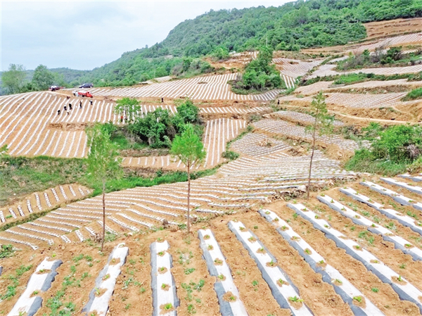 離開錢河梁,走進海棠寺村的梯田里,種煙大戶吳義剛正迎著晨曦帶上20余名村民搶墑移栽。23年的種煙歲月在他臉上刻下溝壑,也沉淀出“致富良經”。他瞇著眼睛笑著說:“去年新種的80畝煙田毛收入24萬,今年爭取再多賺點,給孩子換臺好車。”當目光撫過嫩綠的煙苗,手掌摩擦著滴灌管道,吳義剛驀然間變得激動:“雖然今春干旱嚴重,但是政府配發(fā)的抗旱設備讓移栽成活率大大提升,我們的心血總算沒有白費?!贝逯Р繒泟⒌瞧巾斨胰账闫甬a業(yè)增收賬:“今年450畝煙田已基本栽完,11個大戶帶著小戶干,戶均增收能破萬元。”