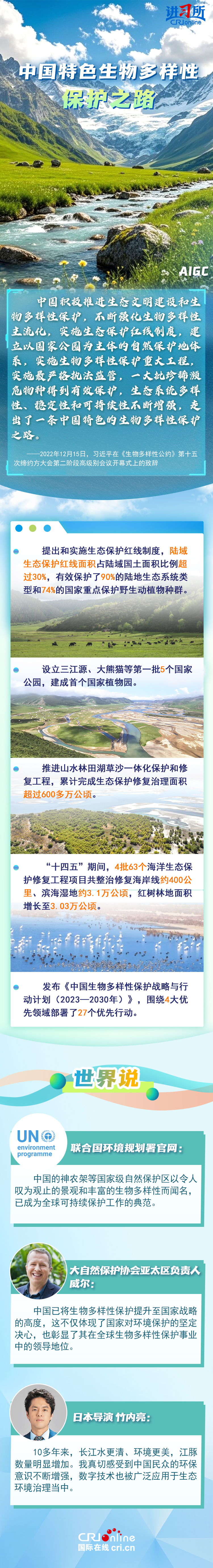 “心往一處想、勁往一處使,共建地球生命共同體。”作為最早簽署、批準(zhǔn)《生物多樣性公約》的締約方之一,生物多樣性保護(hù)已經(jīng)上升為中國(guó)的國(guó)家發(fā)展戰(zhàn)略。國(guó)際人士表示,中國(guó)的一系列舉措體現(xiàn)出對(duì)生態(tài)環(huán)境保護(hù)的堅(jiān)定決心,同時(shí),中國(guó)依托共建“一帶一路”倡議等國(guó)際合作機(jī)制,為推動(dòng)全球生物多樣性保護(hù)提供了有力支持,在邁向自然友好型未來(lái)的過(guò)程中發(fā)揮關(guān)鍵的引領(lǐng)作用。