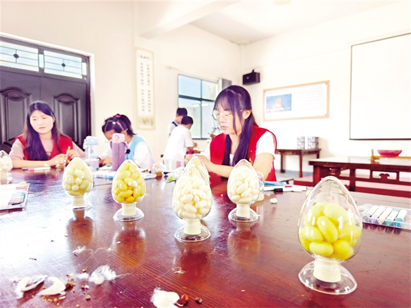 雙營村共享蠶室,村民們正忙著采收夏蠶繭。
