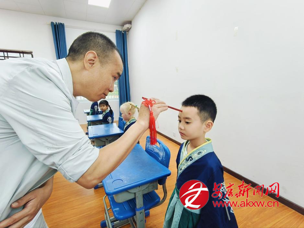 “端身正姿、肅整衣冠、擊鼓明志……”9月12日,鎮(zhèn)坪縣同維希望小學階梯教室內,2025年一年級新生“開筆禮”如期舉行?,F(xiàn)場通過“正衣冠”“感孝悌”“朱砂啟智”“擊鼓鳴志”“開筆啟智”等環(huán)節(jié),讓同學們深切感受尊長孝親、志存高遠、勤學上進的中國傳統(tǒng)文化的精神內涵。(通訊員 王康)