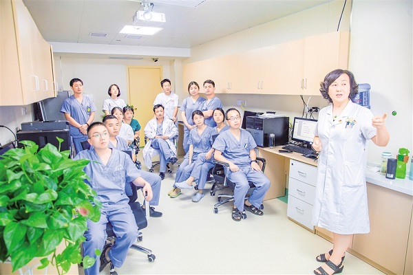 楊小翠(右一)為科室青年醫(yī)生授課