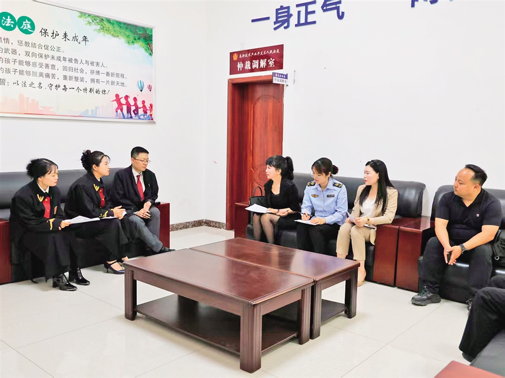 高新法庭特邀人大代表、政協(xié)委員、市場(chǎng)監(jiān)管工作人員及科創(chuàng)園企業(yè)代表走進(jìn)法庭,聯(lián)合開展調(diào)解工作。趙永佳 攝