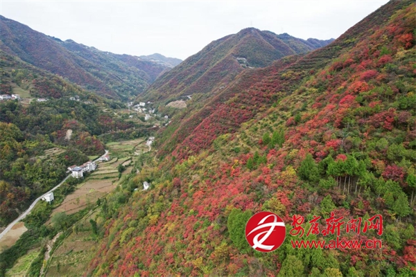 初冬時(shí)節(jié),地處秦嶺南麓的漢濱區(qū)早陽(yáng)鎮(zhèn)境內(nèi),滿(mǎn)山的紅葉把山村裝扮得美如一幅畫(huà),引得眾多游客和市民來(lái)這里賞紅葉、觀美景,盡享生態(tài)之美。圖為無(wú)人機(jī)視角下的早陽(yáng)紅葉美景。 (通訊員 周濤)