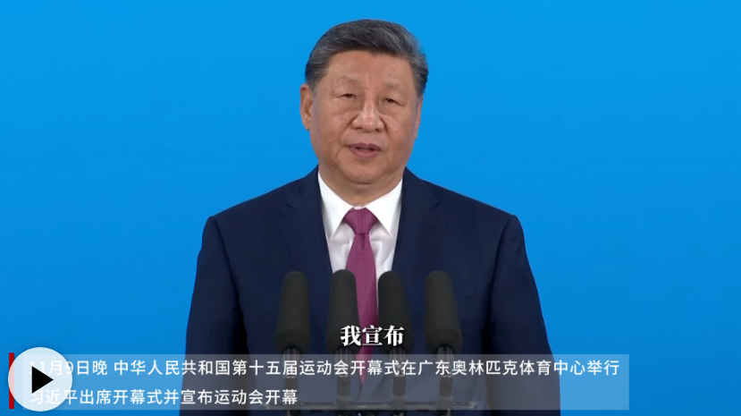 11月9日晚,中華人民共和國第十五屆運(yùn)動會在廣東省廣州市隆重開幕。中共中央總書記、國家主席、中央軍委主席習(xí)近平出席開幕式并宣布運(yùn)動會開幕。