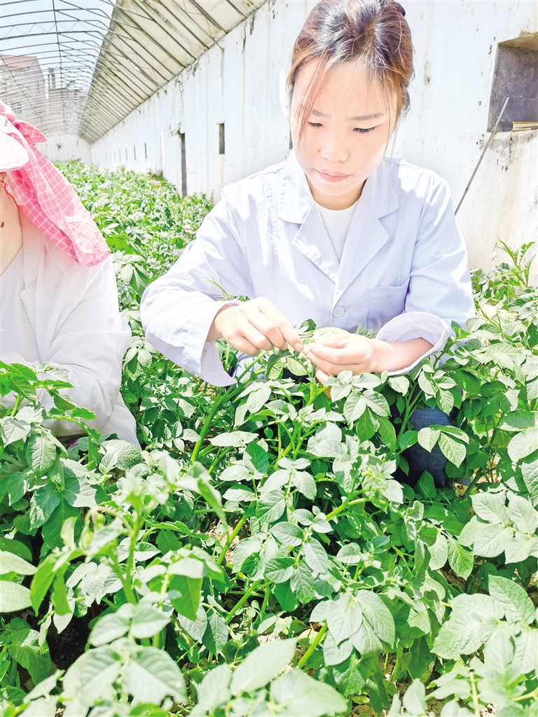 但更大的技術突破發(fā)生在實驗室和試驗田。在市農業(yè)科學研究院的組培室內,科研人員正通過莖尖脫毒技術,讓馬鈴薯實現“逆齡生長”。鄭敏告訴記者,團隊目前引進優(yōu)質種質資源20余個,雜交創(chuàng)制優(yōu)質無性系材料百余份,篩選出中早熟優(yōu)系3個、中晚熟優(yōu)系8個并通過國家或省級區(qū)域試驗,形成了“研發(fā)一代、儲備一代、推廣一代”的良性循環(huán),構建了完整的馬鈴薯種業(yè)創(chuàng)新體系。