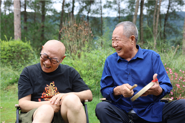 音樂人李杰(左)和紫陽民歌省級(jí)傳承人何耀信(右)