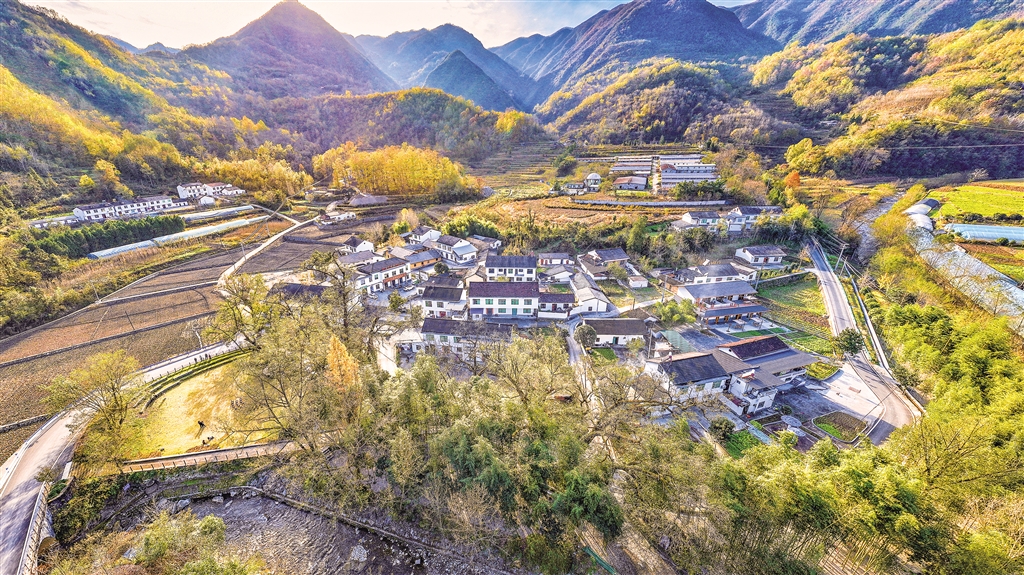 11月23日,夕陽下的石泉縣城關(guān)鎮(zhèn)雙嶂村風(fēng)景如畫。董長松 攝