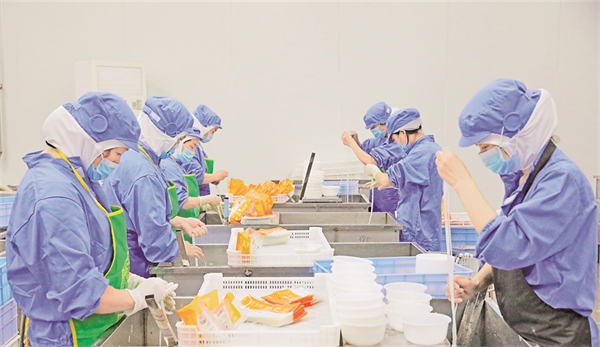 在五里工業(yè)集中區(qū)富硒食品產(chǎn)業(yè)園,悠源公司幾條生產(chǎn)線開足馬力生產(chǎn),全力以赴備貨。工作間里,調(diào)味師張萍一絲不茍地稱量、拌料。根據(jù)不同產(chǎn)品,將食鹽、白糖等各種調(diào)味品嚴格按比例加入。
