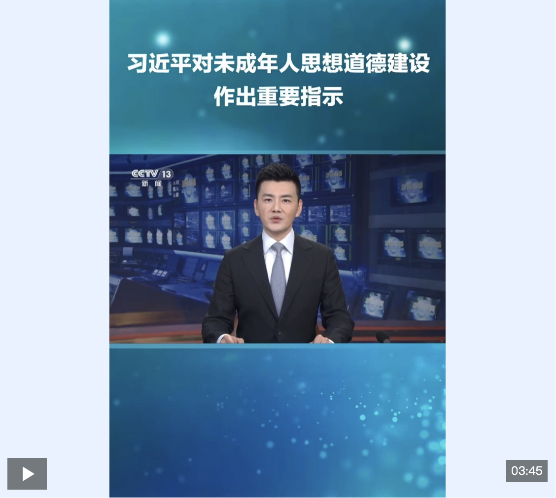 近日,習近平總書記對未成年人思想道德建設(shè)作出重要指示,要求落實立德樹人根本任務(wù),堅持把未成年人思想道德建設(shè)作為戰(zhàn)略性、基礎(chǔ)性工作來抓。(詳情>>)