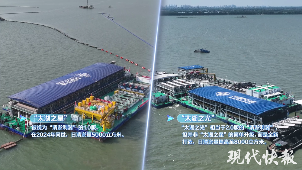 未來6年內(nèi),“太湖之光”在宜興太湖水域?qū)⑼瓿沙f立方米的清淤任務(wù),相當(dāng)于為太湖“減負(fù)”約4000個標(biāo)準(zhǔn)游泳池的淤泥量。同時,“太湖之光”各艘模塊船可靈活組合、動態(tài)調(diào)動,適配全國多個平原淺水型湖泊的治理需求。