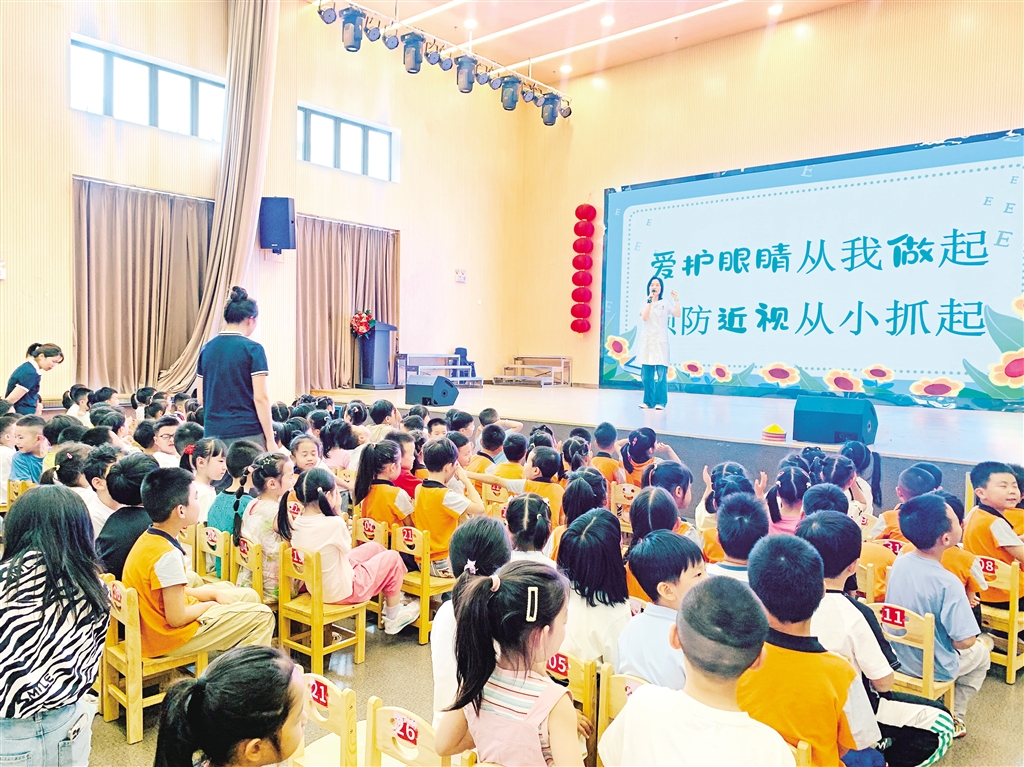 今年6月6日是全國第30個“愛眼日”。在愛眼日來臨之際,6月5日下午,市婦幼保健院兒童保健科醫(yī)生陳興芳走進安康市高新區(qū)第六幼兒園,為大班幼兒及老師帶來近視防控知識講座。陳興芳以眼睛的謎語開場,用通俗易懂的語言向孩子們介紹了眼睛的結構和功能,并通過生動的科普向小朋友們介紹了如何正確用眼、保護視力以及手衛(wèi)生的方法。通過此次活動,不僅讓孩子們了解了眼睛的重要性,更提高了孩子們愛護眼睛的意識。(鄒春艷 攝)