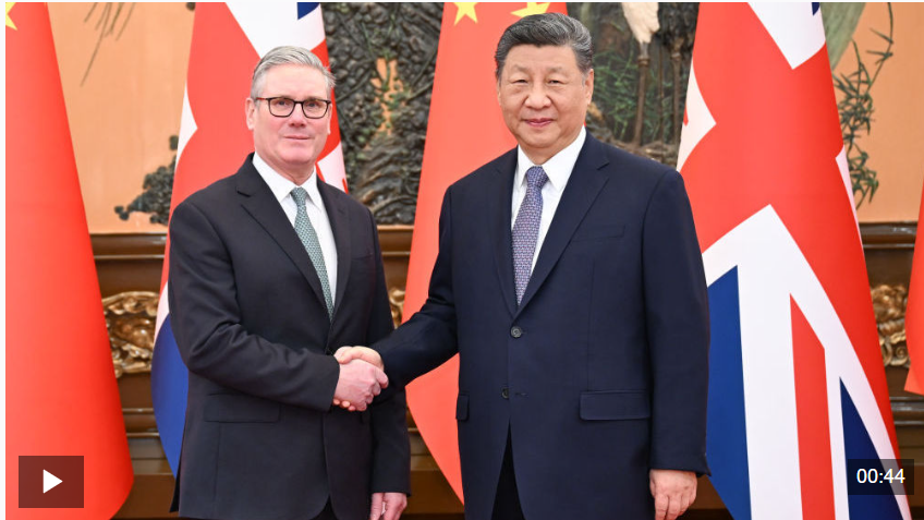 1月29日上午,國家主席習近平在北京人民大會堂會見來華進行正式訪問的英國首相斯塔默。