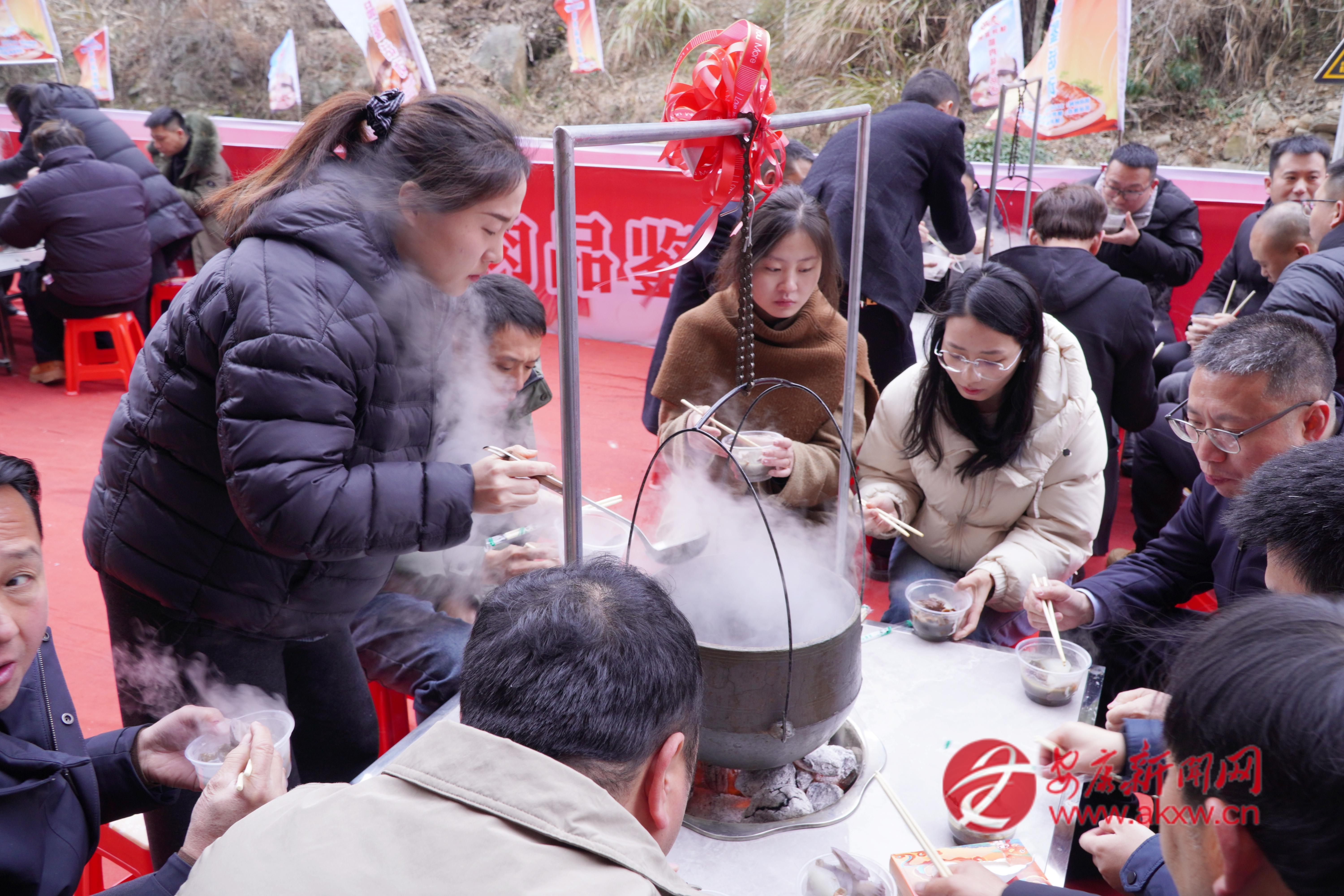 活動(dòng)現(xiàn)場(chǎng),一口巨型大鐵鍋格外引人注目,它可以燉500斤肉,可供1000人同時(shí)品嘗鎮(zhèn)坪富硒臘肉。同時(shí),20個(gè)吊鍋中,臘肉與香菇、竹筍、干洋芋果果一同燉煮,香氣四溢,讓人垂涎欲滴。賓客們圍坐一起有說有笑,品嘗著可口地道的鎮(zhèn)坪臘肉,不僅是一場(chǎng)臘肉美食的集會(huì),更是一種非遺技藝的傳承。“早就聽說陜南鎮(zhèn)坪的富硒臘肉有名,這次專程趕來,就為這一口地道的臘味,品嘗后覺得這臘肉的味道太美了!”在活動(dòng)現(xiàn)場(chǎng),一位來自西安的游客李先生在品嘗鎮(zhèn)坪臘肉后高興地說道。
