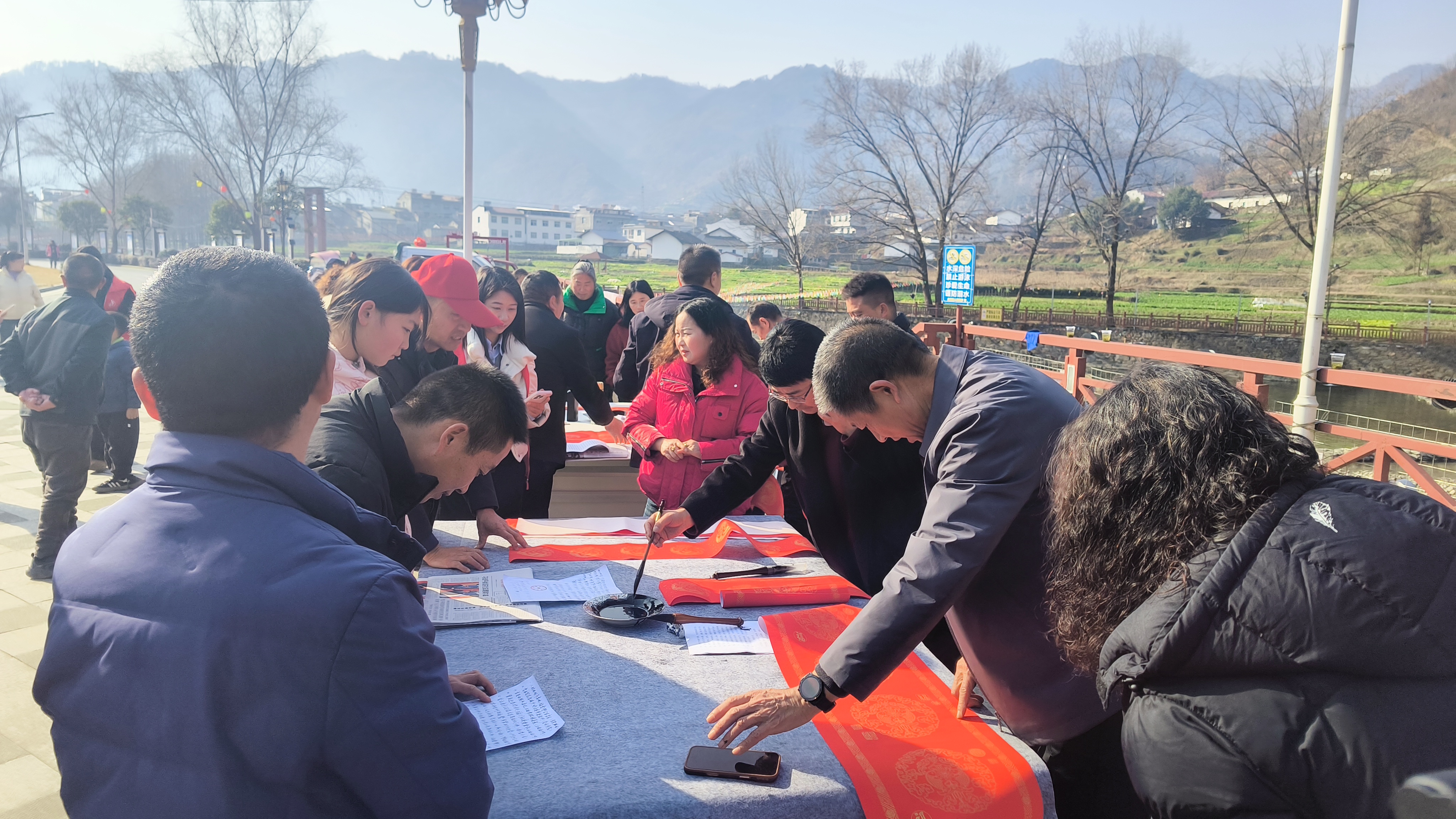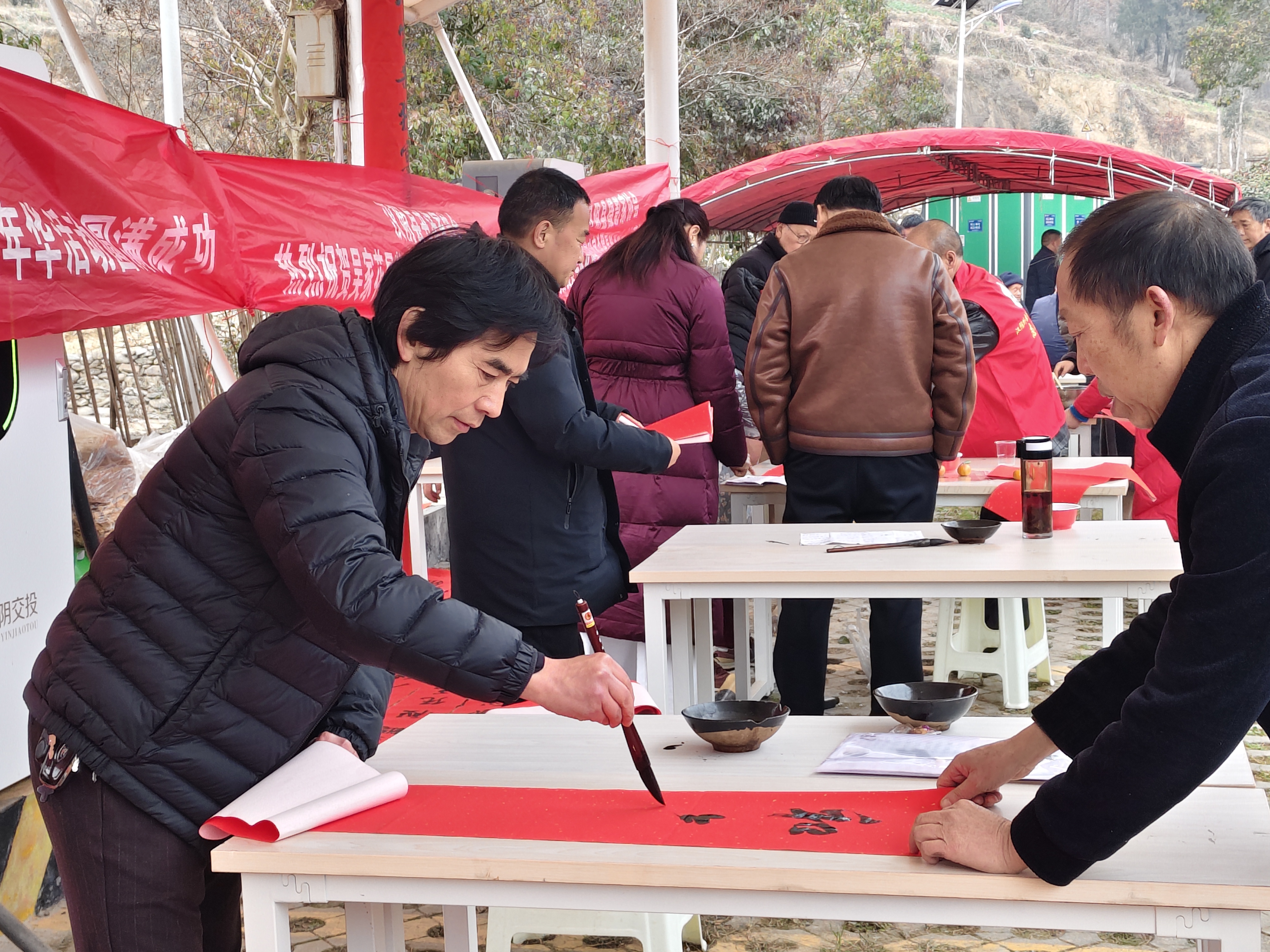 2月5日,平利縣文聯(lián)、書協(xié)聯(lián)合大貴鎮(zhèn)公共文化服務共同體分中心、新時代文明實踐所,在集鎮(zhèn)親水廣場開展義寫春聯(lián)活動,以翰墨傳遞新春祝福,用文化賦能文明實踐。 陳青青 攝