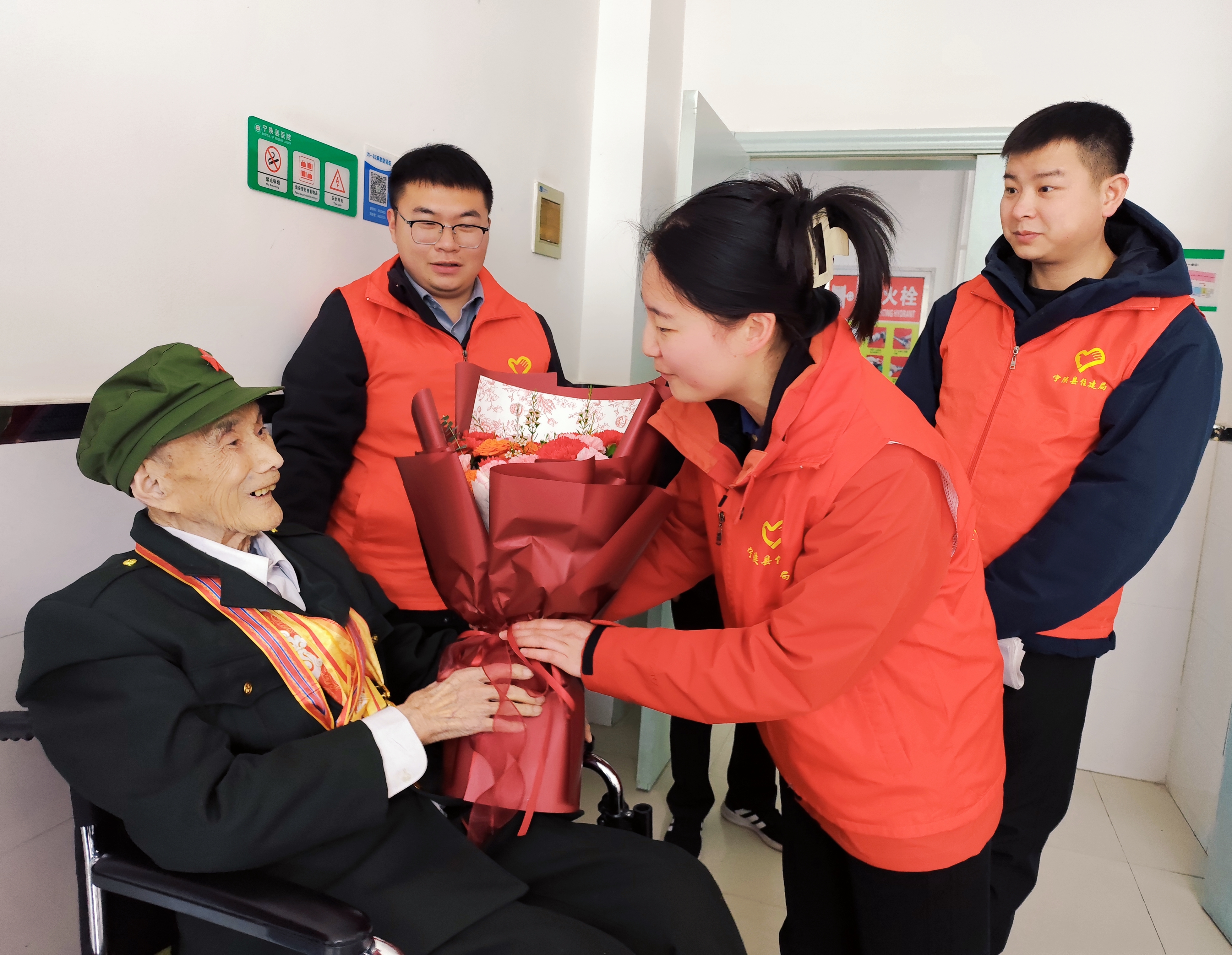 活動現(xiàn)場暖意融融,志愿者圍在老人身邊,促膝長談、噓寒問暖,細(xì)心詢問其飲食起居和身體狀況,認(rèn)真傾聽那段浴血奮戰(zhàn)的革命故事?!袄先孙嬍城宓駹顟B(tài)一直很好。”護(hù)理人員李娟介紹,老人性格開朗,時常給大家講述戰(zhàn)場事跡,傳遞著滿滿的正能量。