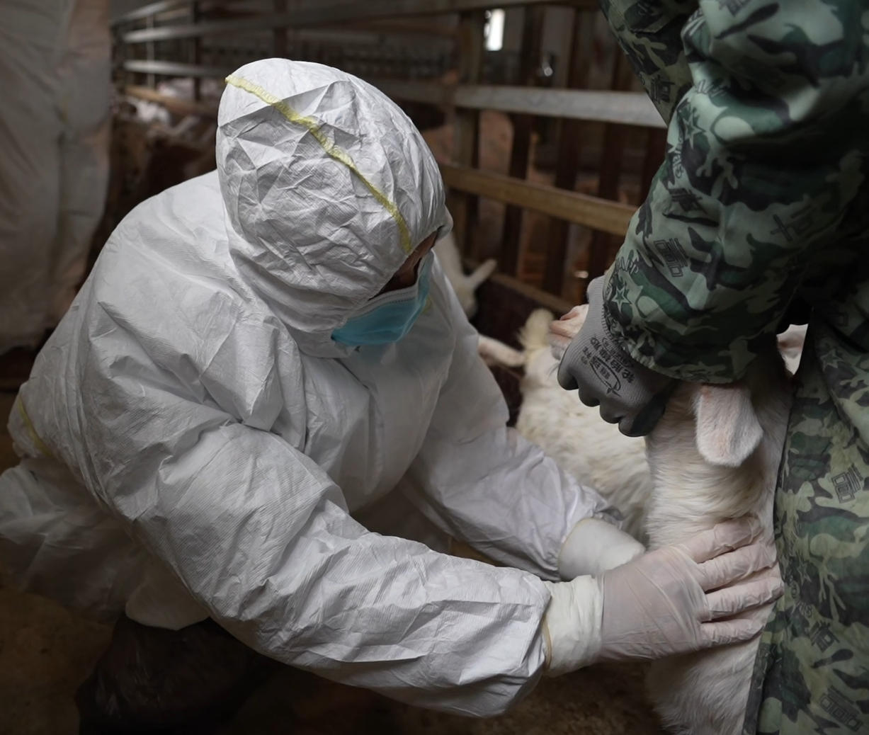 3月1日,在漢濱區(qū)關廟鎮(zhèn)唐淌村甲升興隆養(yǎng)殖合作社,畜牧獸醫(yī)師王峰身著白色防護服,蹲在羊圈邊,采集山羊血樣,為春季動物防疫工作“精準把脈”。
