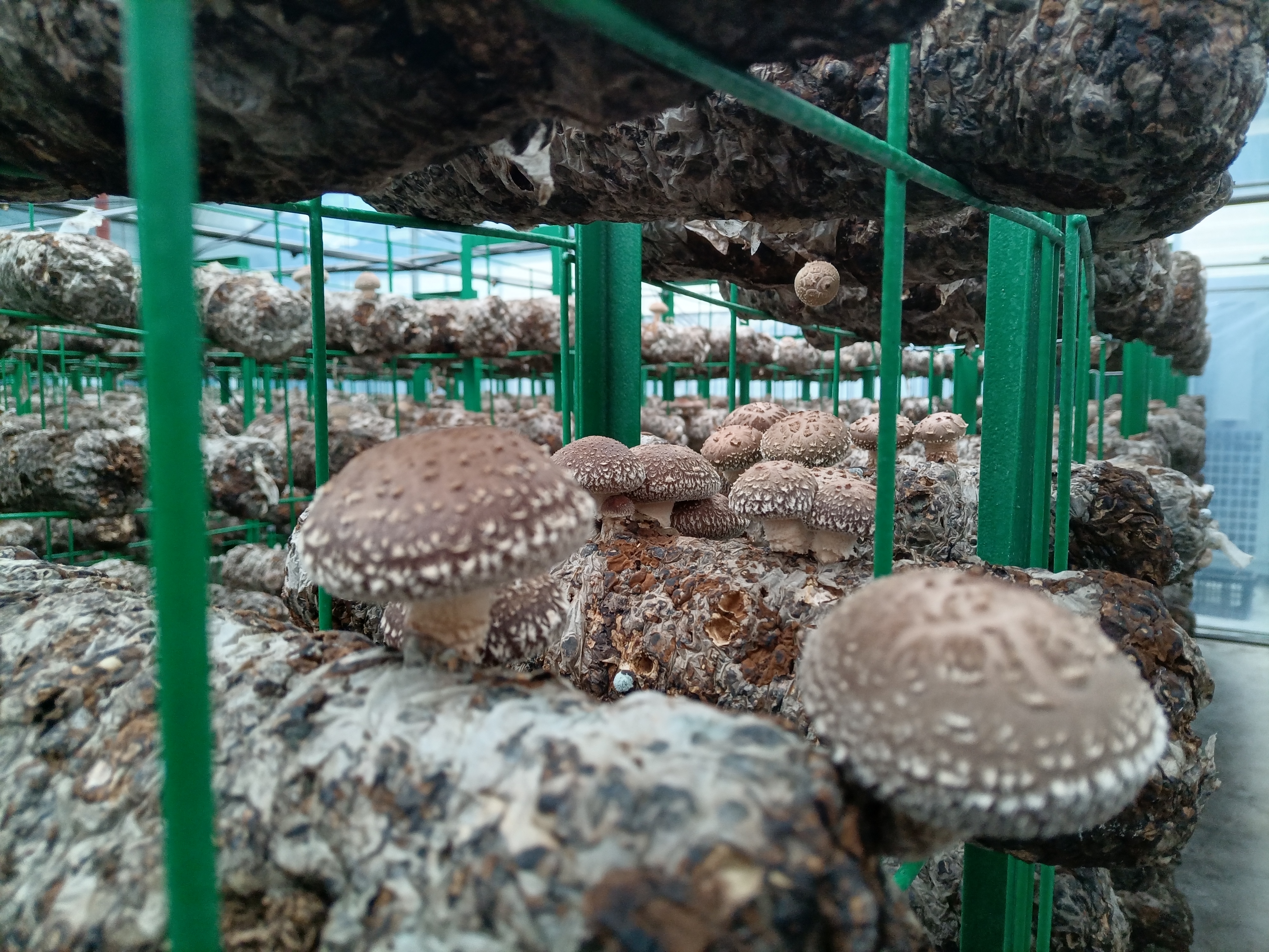 △ 喜河鎮(zhèn)晨光村食用菌標(biāo)準(zhǔn)廠房內(nèi)香菇長勢喜人