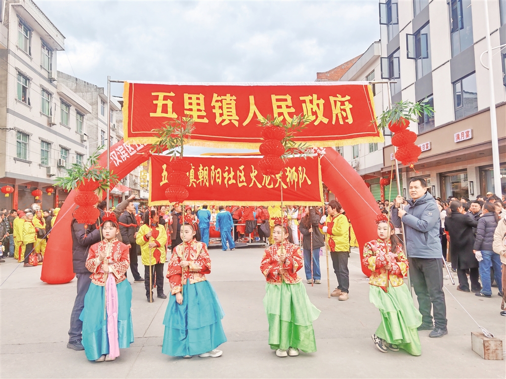 展演結(jié)束后,火龍、火獅和采蓮船等展演隊伍也被五里工業(yè)集中區(qū)企業(yè)邀請進(jìn)行表演。在鏗鏘鑼鼓聲中,歡騰民俗在現(xiàn)代化廠區(qū)生動呈現(xiàn),職工們駐足觀看、掌聲不斷,處處洋溢著喜慶祥和、昂揚向上的濃厚氛圍。