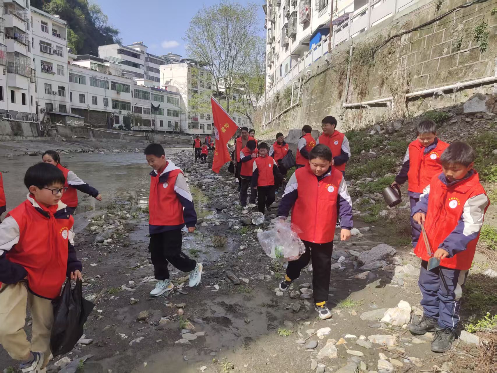 白河縣西營鎮(zhèn)中心小學(xué)組織學(xué)生組成志愿服務(wù)隊(duì),前往河道清理垃圾,以實(shí)際行動踐行雷鋒精神。汪義春 攝